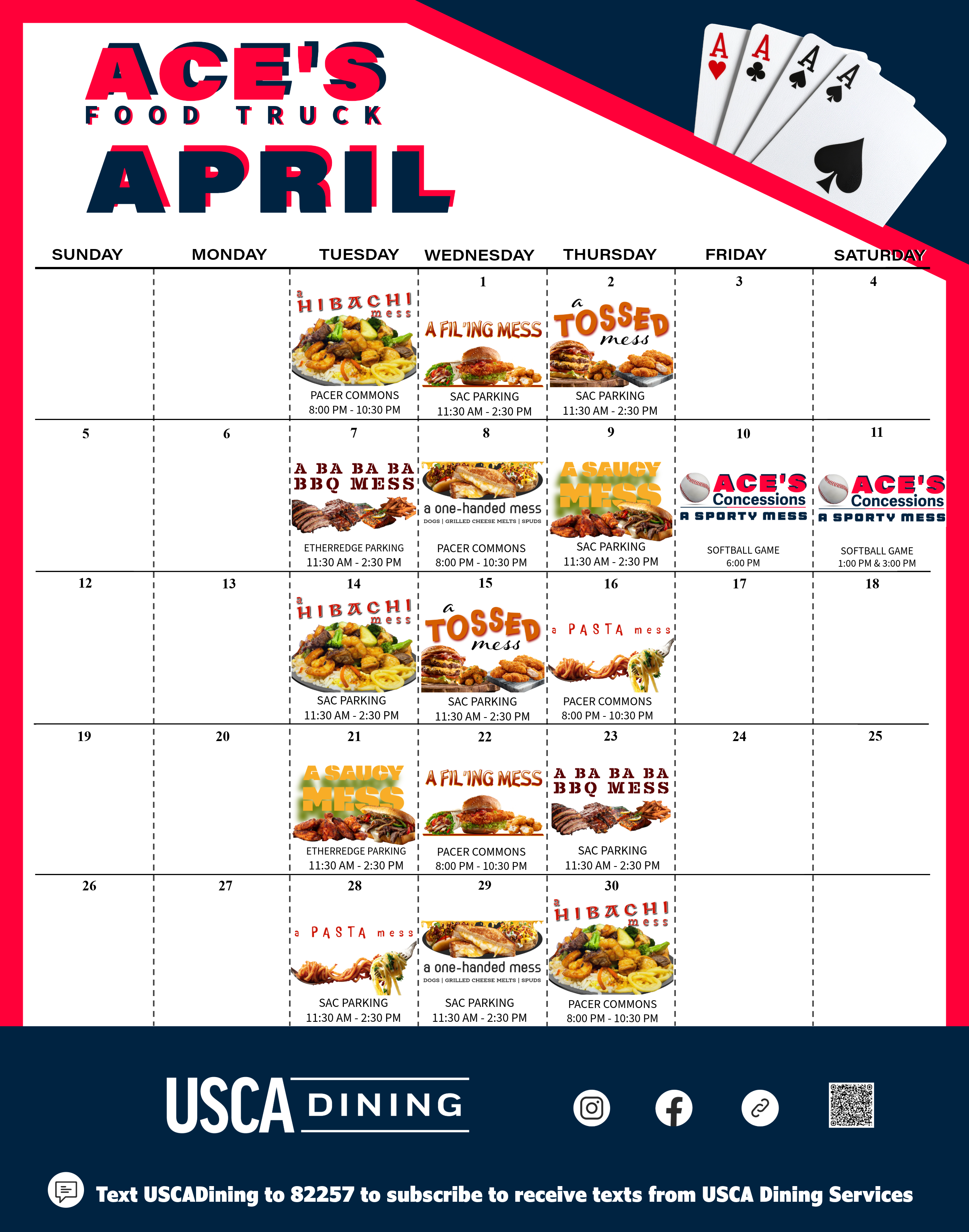 Our menu rotates a vareity of offerings to expand campus food options from wings and burgers to tenders and cheesesteaks to hot dogs, melts and spuds, and more!